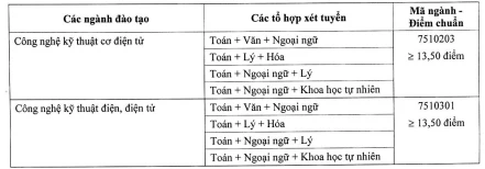 Trường có điểm chuẩn 13,5 ở nhiều ngành, điểm cao nhất 16,5 ở ngành công nghệ thông tin.