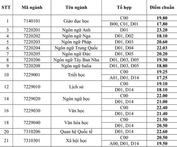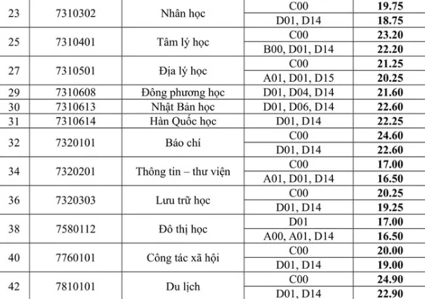 ĐH Khoa học Xã hội và Nhân văn: Điểm chuẩn cao nhất là 24,9