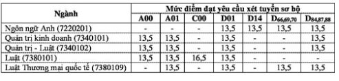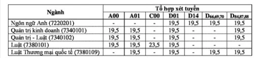 Điểm xét tuyển (đã bao gồm điểm ưu tiên theo khu vực và đối tượng) của các tổ hợp là khác nhau đối với từng ngành mà thí sinh có nguyện vọng đăng ký xét tuyển. Số điểm tối thiểu phải đạt được:
