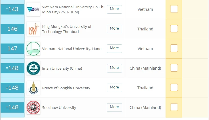 Đặc biệt, ĐH Quốc gia TP.HCM hiện đứng số một tại Việt Nam ở hai tiêu chí quan trọng là danh tiếng học thuật và danh tiếng với nhà tuyển dụng. Hai tiêu chí này được xếp vào top 100 ĐH hàng đầu châu Á.