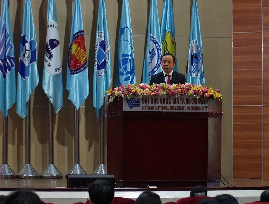 Tại đây, PGS.TS Vũ Hải Quân, Giám đốc ĐH Quốc gia TP.HCM, đánh giá năm 2021 là năm gặp nhiều khó khăn vì ảnh hưởng của dịch COVID-19. Tuy nhiên, ĐH này vẫn đạt được nhiều thành công. Các đơn vị trong hệ thống đã triển khai, hoàn thành được nhiều nhiệm vụ đề ra, từ kiện toàn bộ máy tổ chức, tuyển sinh, đổi mới cơ chế hoạt động, đẩy mạnh nghiên cứu khoa học, hợp tác đào tạo, nâng cao vị thế xếp hạng trong và ngoài nước….