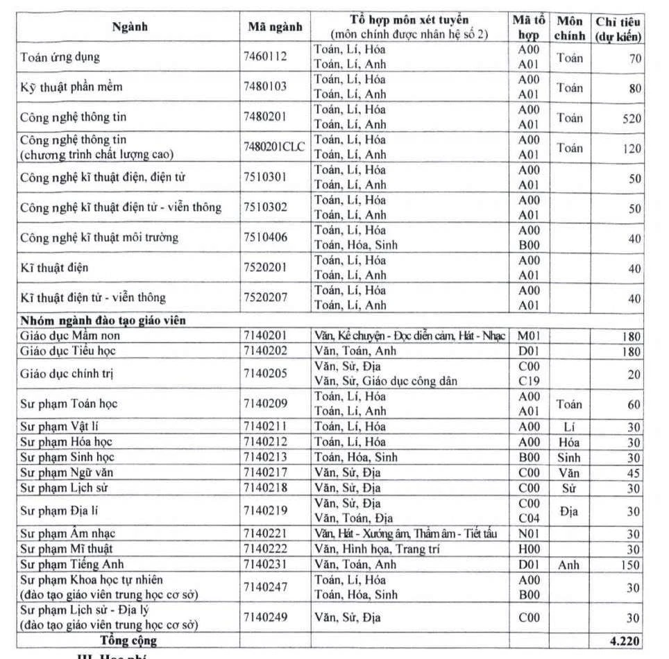 Ngoài ra, Trường cũng lưu ý, đối với nhóm ngành đào tạo giáo viên sẽ không tuyển thí sinh bị dị hình, dị tật, nói ngọng, nói lắp.