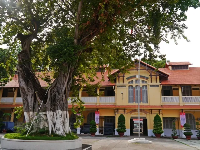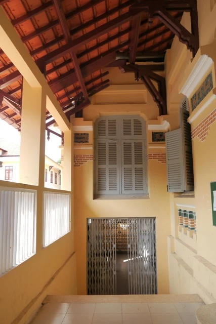 Các hoạ tiết trang trí được khéo léo xếp đặt lai trộn giữa 2 nền văn hoá Á Âu, tạo ra những sự phá cách rất riêng trong lối kiến trúc của trường Các bậc cầu thang được làm cách đó cả trăm năm nhưng vẫn còn nguyên vẹn cho đến giờ Thiết kế cửa sổ dạng mái vòm tạo nét mềm mại, thơ mộng cho khối kiến trúc này