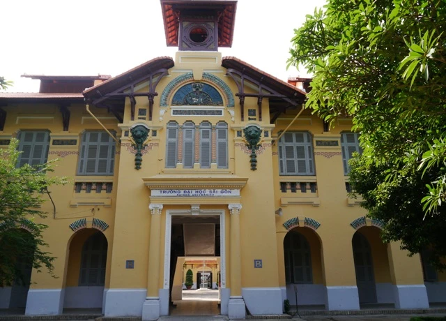 So với nhiều trường ĐH tại Sài Gòn, sinh viên học tại ngôi trường này có một không gian lãng mạn với những dãy nhà nhuốm sắc vàng thời gian, những mái vòm cong mềm mại, những bậc thang bằng gỗ cọt kẹt và cả những hàng ghế đá nhỏ nối dài.