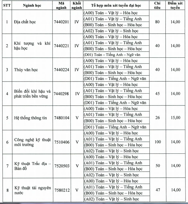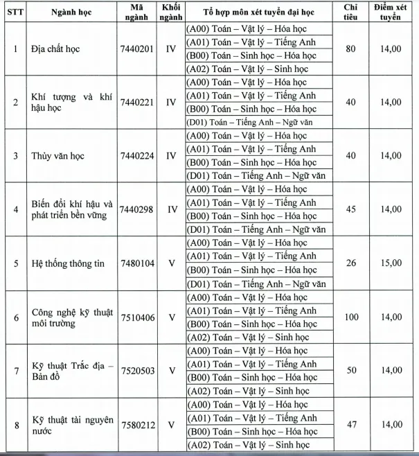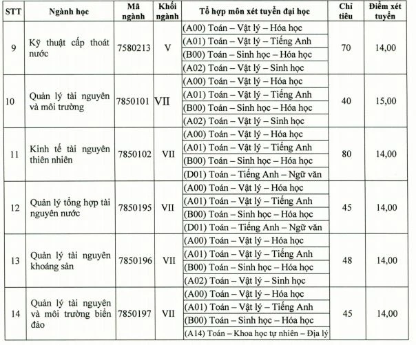 Trong đó, những ngành thiếu chỉ tiêu cao nhất là Công nghệ kỹ thuật môi trường với 100 chỉ tiêu, Địa chất học là 80, Kinh tế tài nguyên thiên nhiên, Kỹ thuật cấp thoát nước….