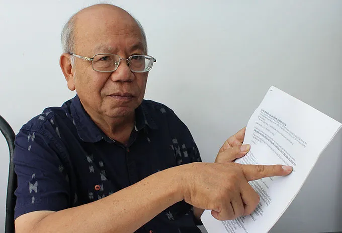 Giáo sư Nguyễn Đăng Hưng và tờ hợp đồng lao động với Trường ĐH Tôn Đức Thắng - Ảnh: H.Bình