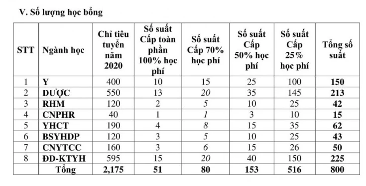 Ngoài ra, Trường ĐH Y dược TP.HCM cũng công bố chính sách học bổng của trường cho sinh viên trúng tuyển năm 2020.