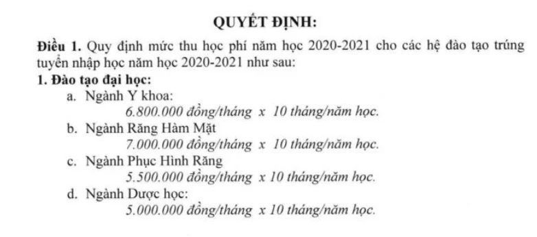 Trường ĐH Y Dược TP.HCM vừa có quyết định chính thức về "Mức thu học phí năm học 2020-2021 áp dụng cho đối tượng trúng tuyển năm 2020".