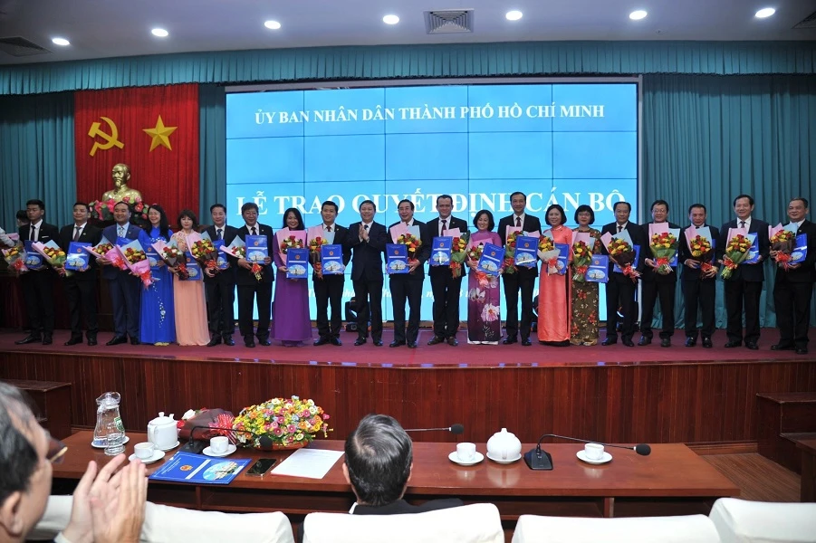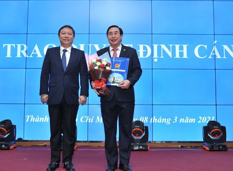 Phó Chủ tịch UBND TP.HCM Dương Anh Đức trao quyết định công nhận Chủ tịch Hội đồng trường cho PGS.TS Ngô Minh Xuân.