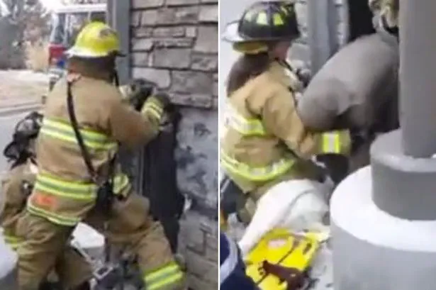 Một nhóm các lính cứu hỏa được cử đến và dùng đến máy cưa chuyên dụng để phá các lớp tường và giải thoát Felyk.