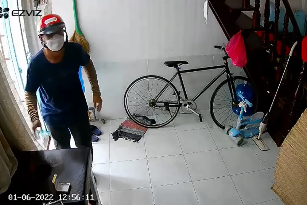 Trước đó, trưa ngày 6-1, chị NTN (28 tuổi, ngụ quận Gò Vấp) nghe chuông điện thoại báo động nên kiểm tra camera an ninh căn nhà trọ trên hẻm đường số 2 (phường 16, quận Gò Vấp) thì phát hiện có trộm.