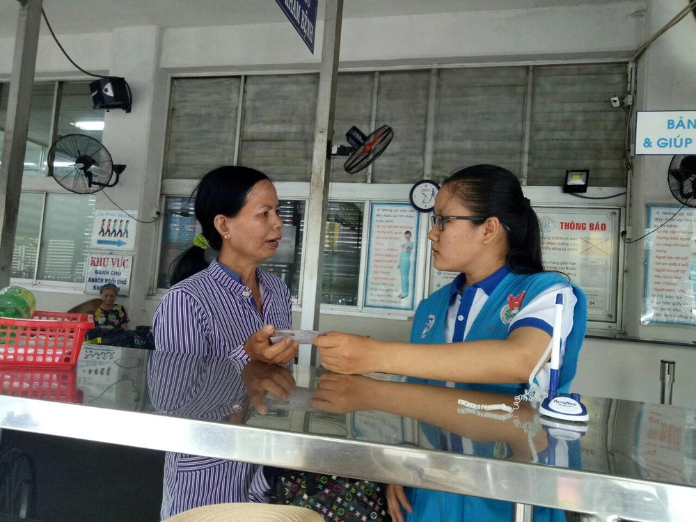 Mỗi sáng từ thứ hai đến thứ sáu hàng tuần, Nguyễn Thảo Vy, sinh viên năm nhất trường Đại học Sư Phạm TP.HCM đều túc trực tại quầy tiếp nhận bệnh của BV Chợ Rẫy để hướng dẫn người bệnh ghi thông tin cá nhân, bốc số, xếp hàng…