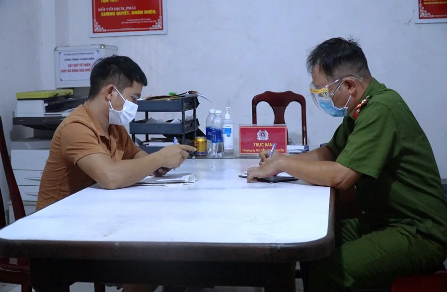 Công an lập biên bản ông Đ. tại trụ sở. Ảnh: H.H
