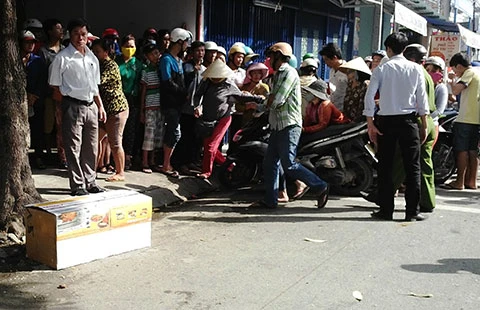 Vụ việc xảy ra khiến hàng trăm người dân hiếu kỳ tụ tập ở hai bên đường Đặng Tất gây ách tắc giao thông (ảnh).