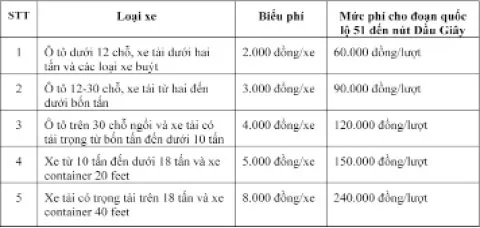 “Trạm thu phí gần nút giao Dầu Giây (tỉnh Đồng Nai) có tám làn thu phí cho hai chiều đã được xây dựng và bắt đầu thu phí ngay sau khi thông đường. Mức thu phí tại trạm này sẽ tính cho khoảng cách 30 km, từ nút giao Dầu Giây đến nút giao quốc lộ 51. Tùy theo các loại xe mà có mức thu phí khác nhau, trong đó mức thấp nhất là 60.000 đồng/xe (ô tô dưới 12 chỗ, xe tải dưới hai tấn và xe buýt) và cao nhất là 240.000 đồng/lượt” - ông Tân nói.