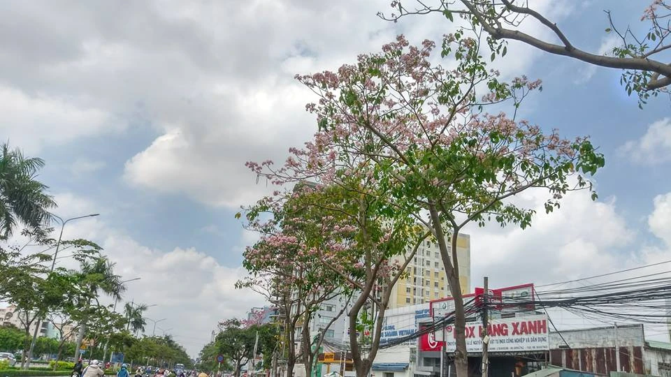 Hàng hoa kèn hồng trên đường Điện Biên Phủ