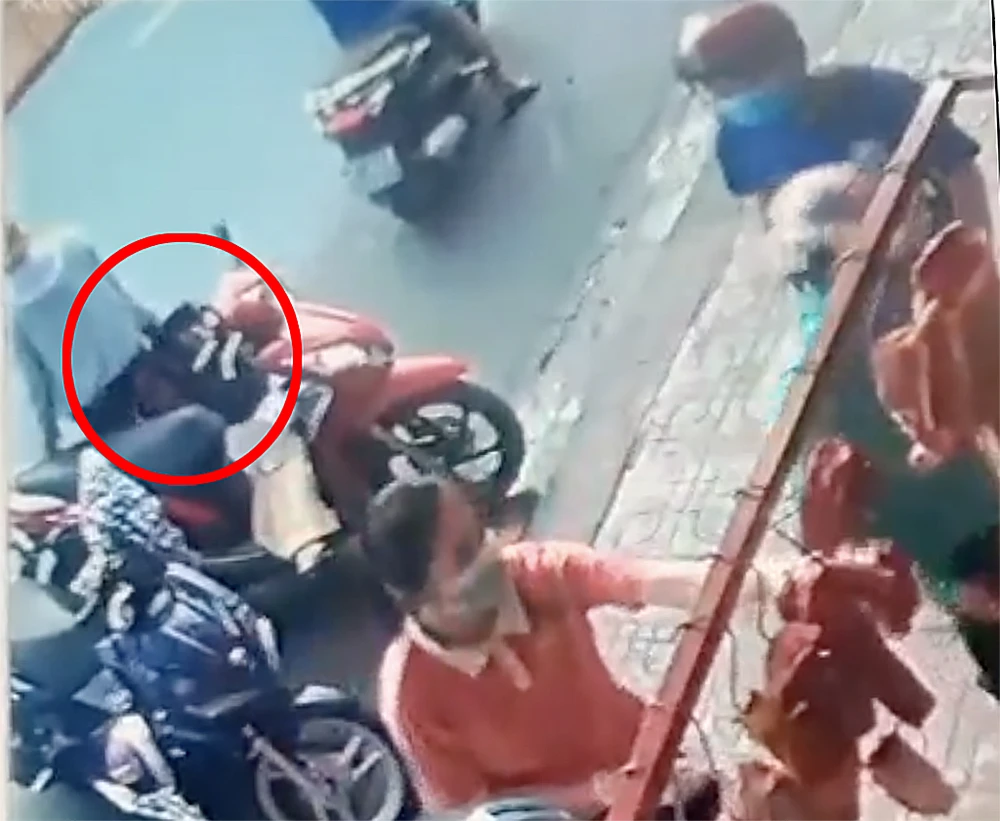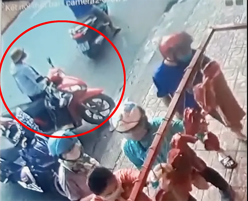 Theo hình ảnh từ camera an ninh, thời điểm chị L. quay lưng mua hàng, một phụ nữ trung tuổi đã tiếp cận chiếc xe máy của nạn nhân.