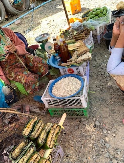 Mật ong rừng, sáp ong nướng bắt gặp tại chợ Lào- cao nguyên Bolaven, Nam Lào