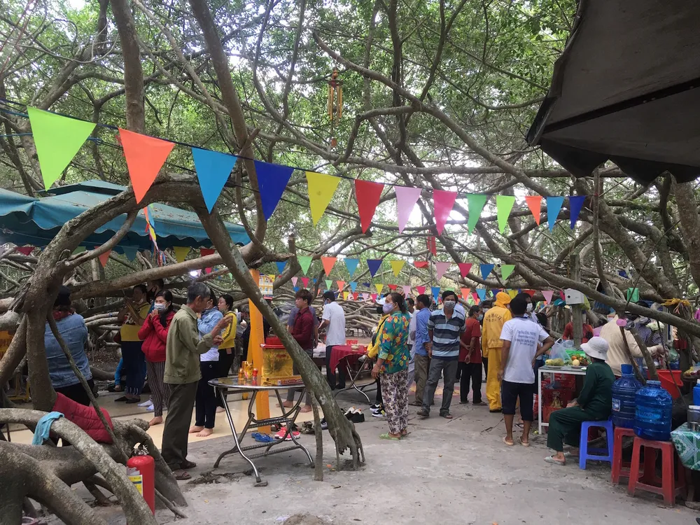 Đặc biệt miếu bà được bao bọc bởi một giàn gừa khổng lồ hơn trăm tuổi. Ảnh: HẢI DƯƠNG