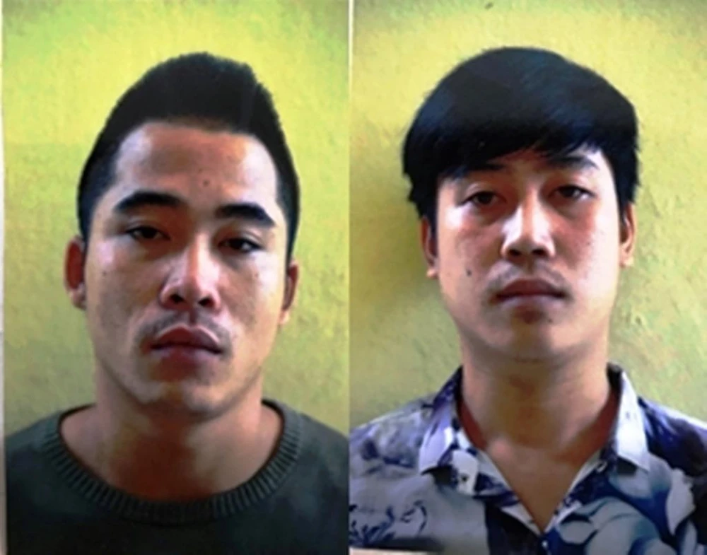 Thủy (trái) và Sơn tại cơ quan công an. Ảnh: Công an cung cấp