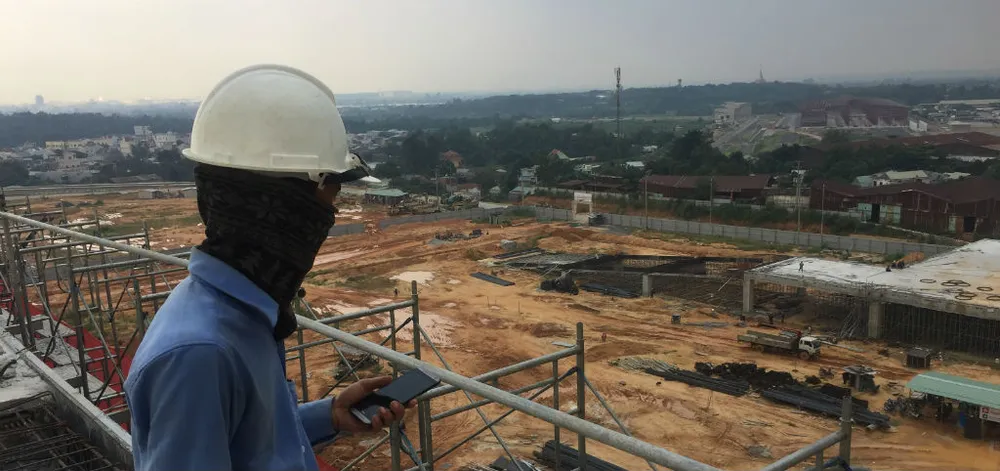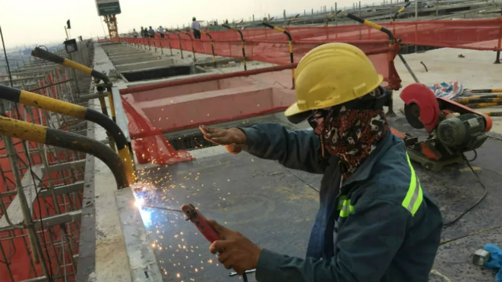 Khối nhà ga chính gồm hai tầng hầm, bốn tầng nổi với tổng diện tích sàn xây dựng hơn 60.000 m2 với các công năng nơi đón khách đi đến, chờ lên xe, nghỉ ngơi, mua sắm... Trong ảnh: Khu vực sàn tầng bốn vừa được thực hiện nghi thức đổ bê tông cất nóc xong và công nhân đang hoàn thiện, thi công các hạng mục tiếp theo...