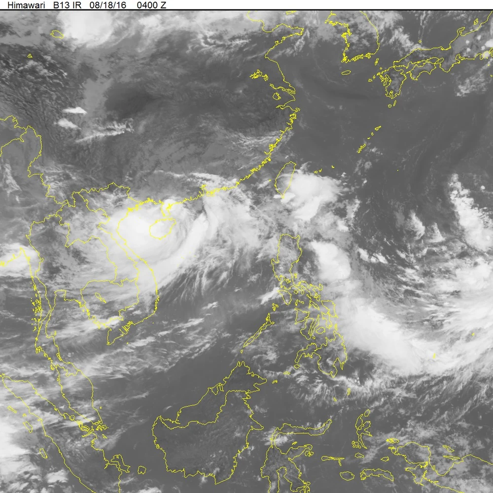 Bão Thần sét giật cấp 14, gây mưa lớn trên diện rộng ở 28 tỉnh, TP phía Bắc từ Hà Tĩnh trở ra. Ảnh: NCHMF