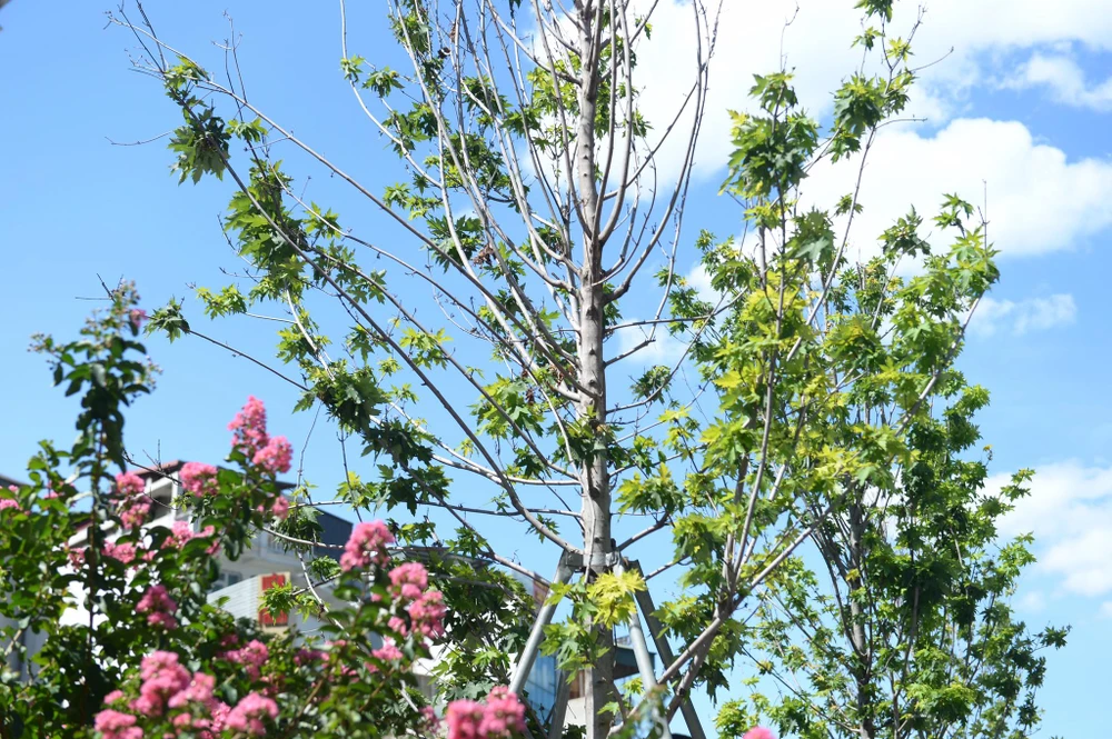 Những cây phong ra lá màu xanh chứ không phải màu đỏ như dự kiến, một số bị chết. Ảnh: UYÊN TRANG