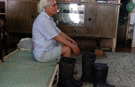 Ba người trong gia đình ông Hồ Đắc Ẩn, số 004, lô 4 phải thường xuyên sử dụng ủng để đi trong nhà. Ảnh: V.HOA