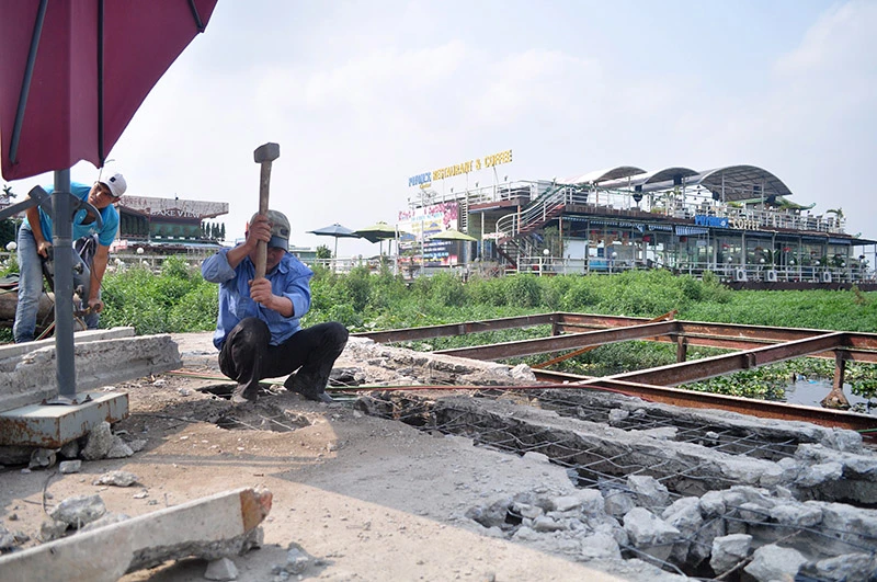 Trao đổi với Pháp Luật TP.HCM ngày 22-2, ông Phạm Việt Hùng, Chủ tịch UBND phường Thuỵ Khuê, cho hay sáng 23-2, chính quyền quận và phường sẽ thực hiện cưỡng chế phá dỡ các cầu dẫn, sàn nổi dẫn xuống du thuyền, nhà nổi tại khu vực đường Nguyễn Đình Thi.