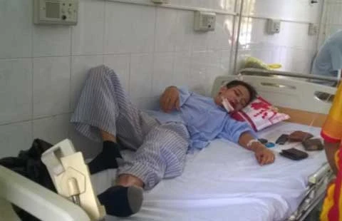 Chú rể Lê Văn Tuấn đang được điều trị sau vụ tai nạn. Ảnh: NGUYỄN HÀ