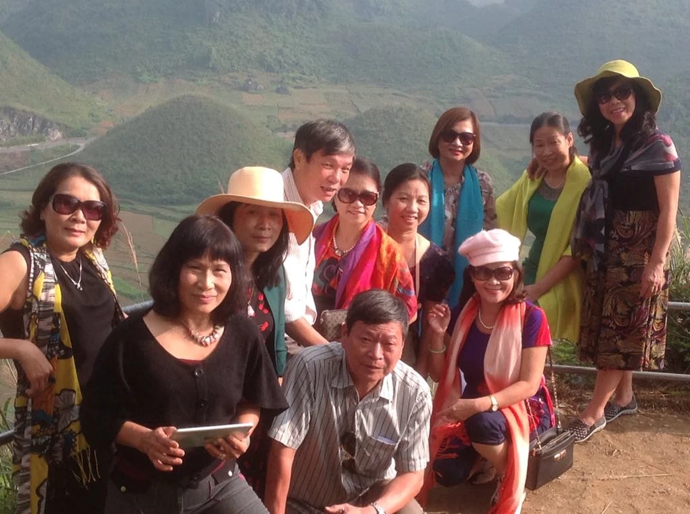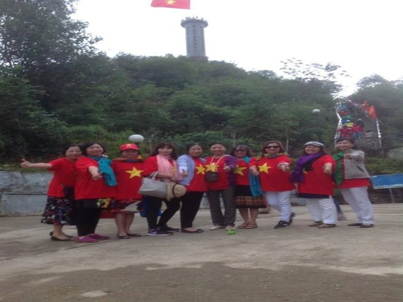 Du khách hào hứng khi vừa tới tham quan cột cờ Lũng Cú. Ảnh: Phi Nga