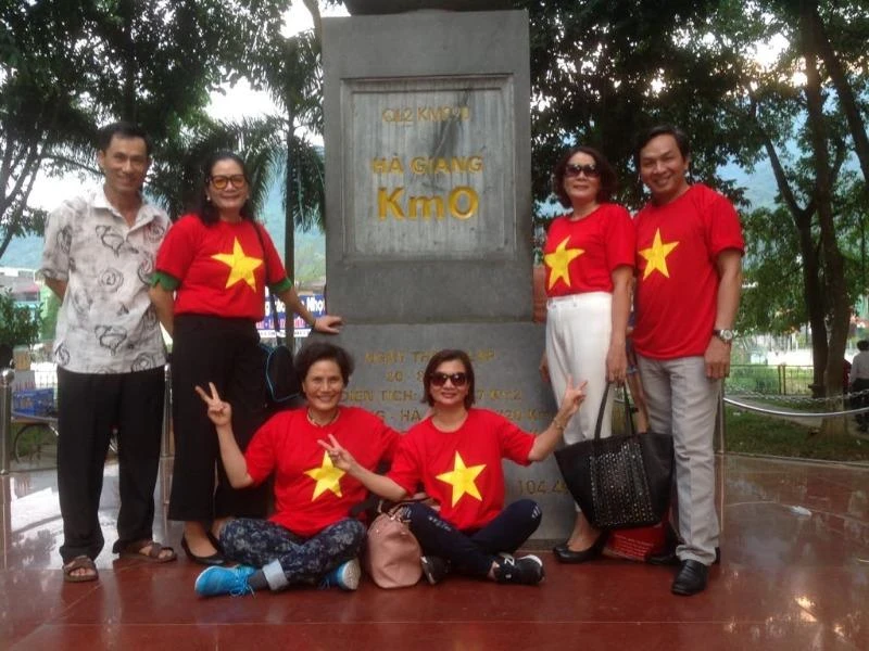 Du khách check in cột mốc Km 0, coi như "ghi dấu ấn" đầu tiên đến với Hà Giang. Ảnh: Phi Nga