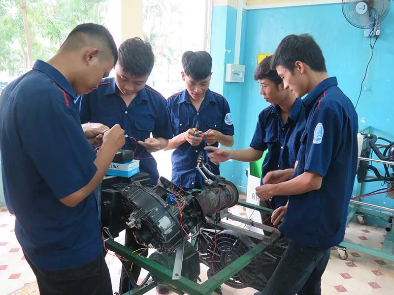 Vào một lớp khác của Khoa bảo trì cơ khí cũng ở trường này, khoảng 20 em đang học rất nghiêm túc.