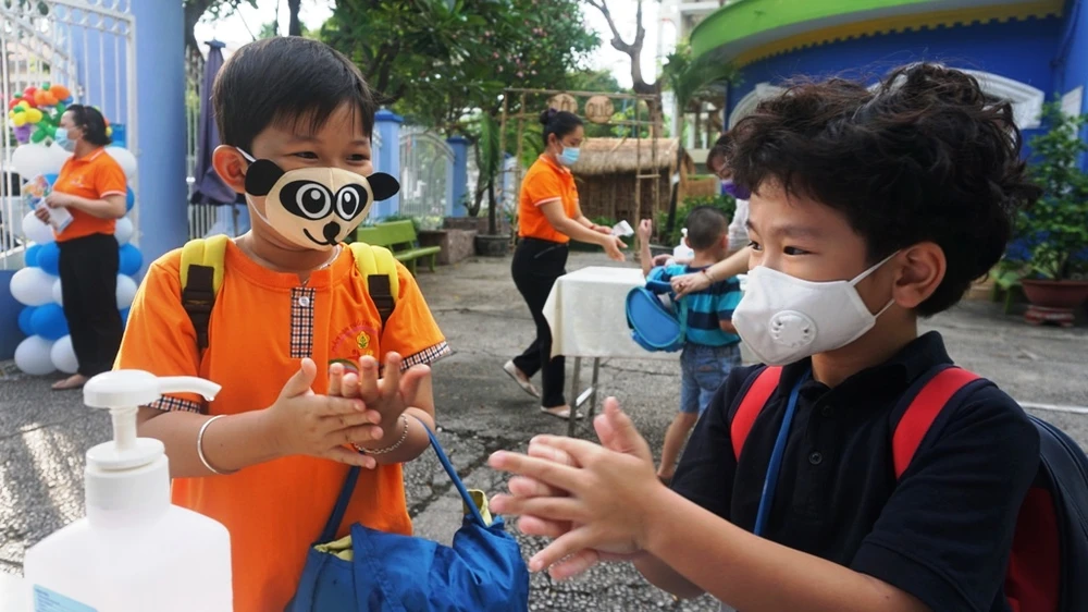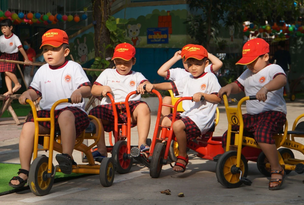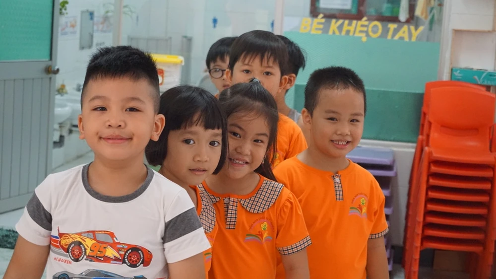 Cô Vũ Đỗ Thúy Hiền, Hiệu trưởng nhà trường, cho biết trường có 130 học sinh khối lớp lá. Trong ngày đầu tiên có 116 bé đi học. Thời gian này, các lớp sẽ tổ chức hoạt động tại chỗ, theo nhóm.