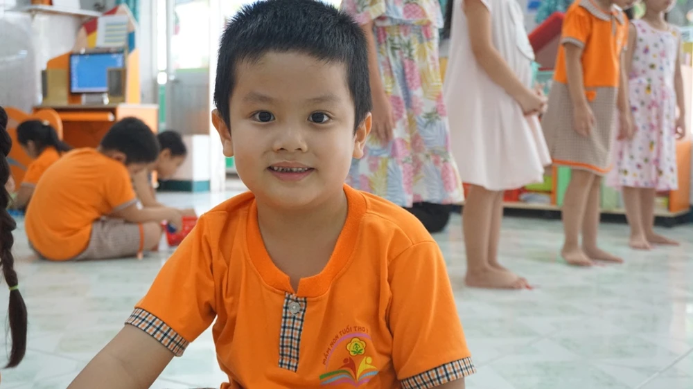 Bé Duy Minh nói: "Con mừng vì được đi học, được gặp bạn, được gặp cô. Thời gian qua ở nhà chán và buồn lắm".