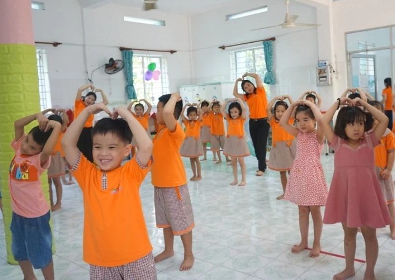 Để phòng tránh dịch, trường đón và trả trẻ tại hai cổng. Giáo viên sẽ đón trẻ trước cổng trường.