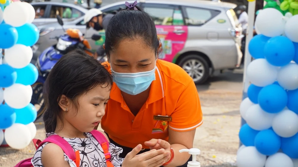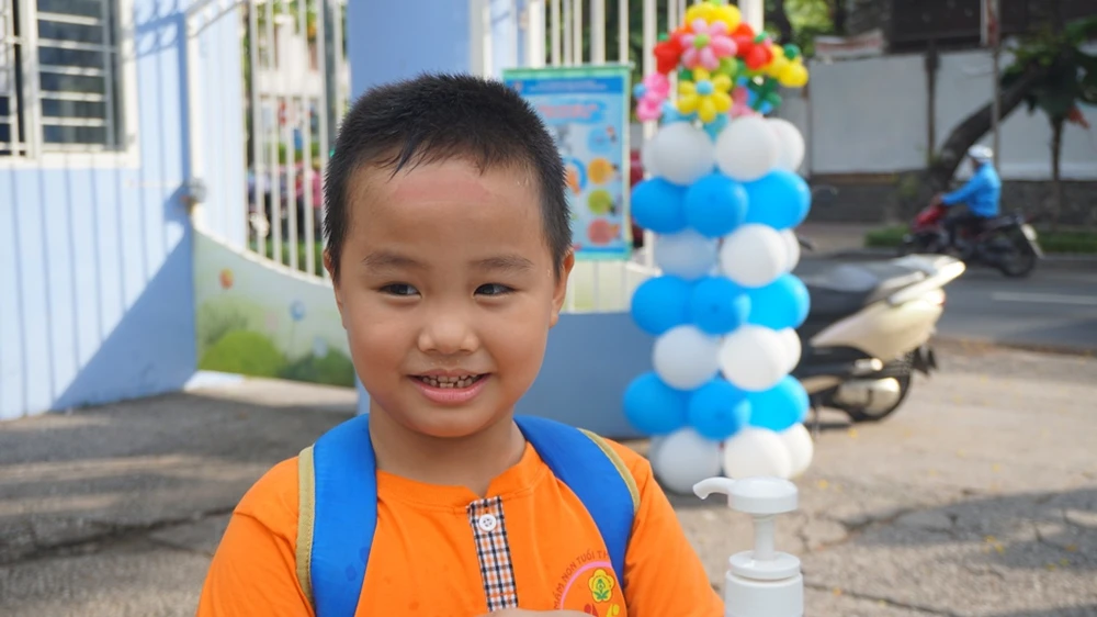 Sáng 18-5, học sinh lớp lá, bậc mầm non tại TP.HCM đi học trở lại sau một thời gian dài nghỉ học tránh dịch COVID-19. Tại Trường Mầm non Tuổi Thơ 7, quận 3, ngay từ sáng sớm giáo viên đã có mặt. Để chào đón các em trở lại trường, nhà trường đã trang trí cổng bằng những chiếc bong bóng xinh xinh.