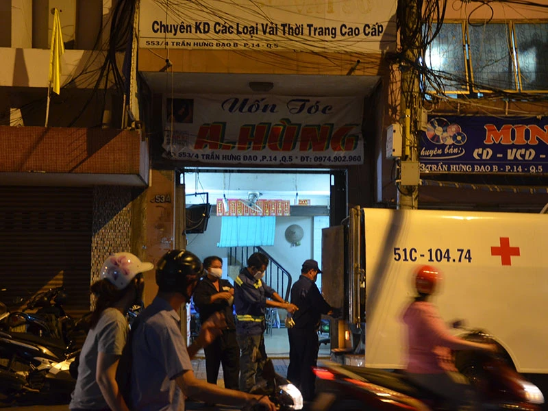 Khoảng 21 giờ ngày 2-5, người chủ tiệm hớt tóc làm việc tại tầng trệt căn nhà số số 553/4 Trần Hưng Đạo B (phường 14, quận 5, TP.HCM) phát hiện mùi hôi dữ dội phát ra từ tầng trên nên đi kiểm tra.