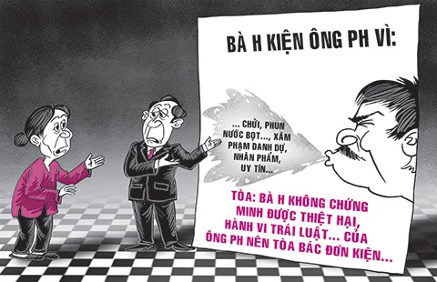 Tóm lại, tòa cho rằng bà H. khởi kiện ông Ph. xâm phạm danh dự, nhân phẩm, uy tín của bà nhưng không chứng minh được thiệt hại xảy ra, cũng như không chứng minh được hành vi trái pháp luật của ông Ph.. Vì vậy, yêu cầu khởi kiện của bà H. không được tòa chấp nhận.
