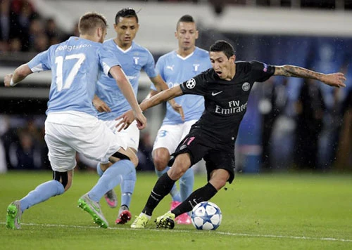 Angel Di Maria (áo đen) chơi tỏa sáng trong trận thắng Malmo 2-0