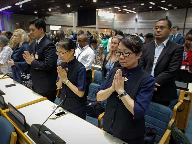 Các đại biểu của Hội đồng môi trường Liên Hiệp Quốc ở Nairobi (Kenya) tưởng nhớ nạn nhân vụ tai nạn máy bay Ethiopian Airlines. Ảnh: AFP