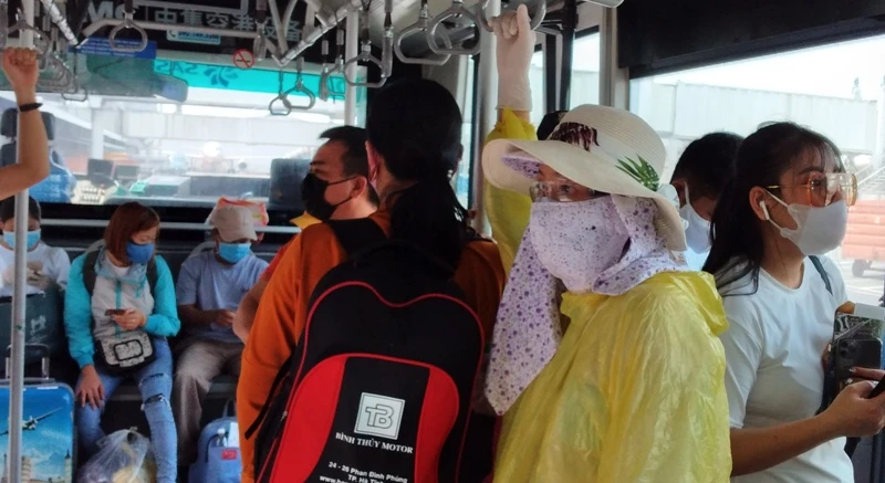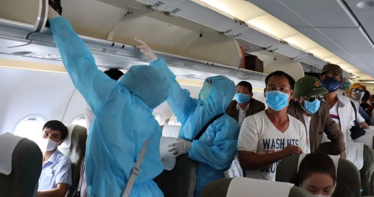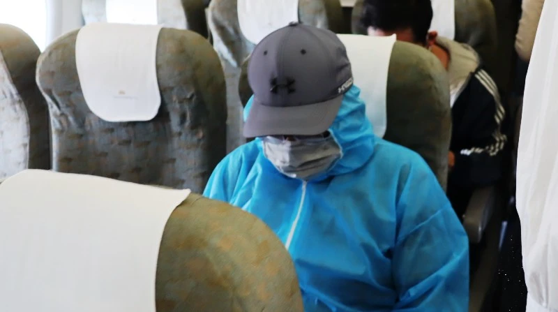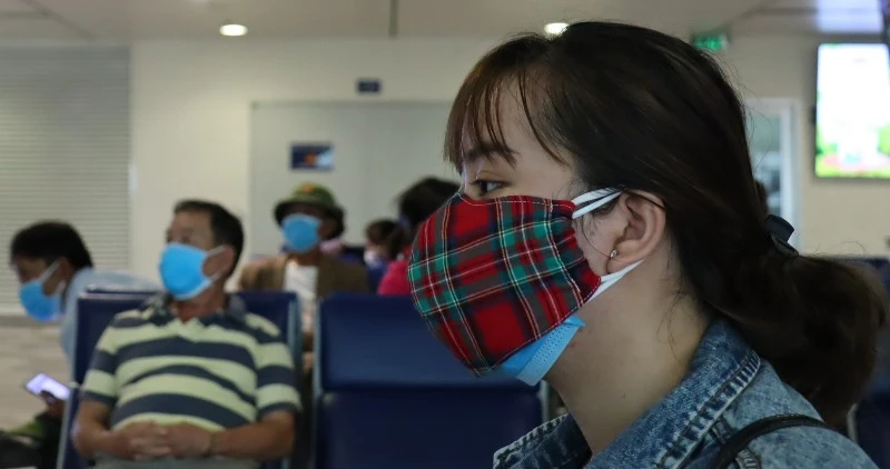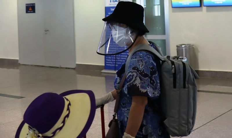 Ngày 24-3, nhiều hành khách ở sân bay Tân Sơn Nhất (TP.HCM), sân bay Vinh (Nghệ An), Nội Bài (Hà Nội), Đà Nẵng, Thanh Hóa và các sân bay trong nước đều cẩn thận đeo hai khẩu trang cùng lúc, mặc đồ bảo hộ kháng khuẩn, bịt kín người từ đầu xuống chân...