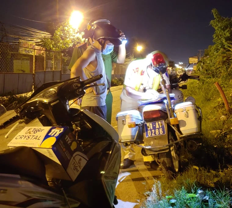 Khuya 11-7, Đội CSGT (KV1) Công an TP Thủ Đức, TP.HCM đã xử lý nhiều trường hợp ra đường khi không thật sự cần thiết. Trong đó có trường hợp đi mua bia về nhậu đợi xe chung kết Euro.