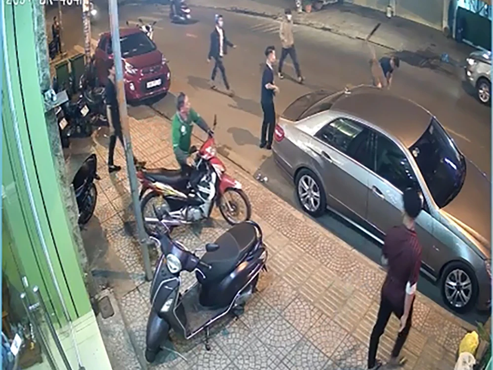 Trong lúc này, một thanh niên cầm gậy đánh bóng chày xô xát với hai thanh niên khác từ trong quán ra đường Nguyễn Ảnh Thủ. Xung quanh, rất đông người đứng xem.