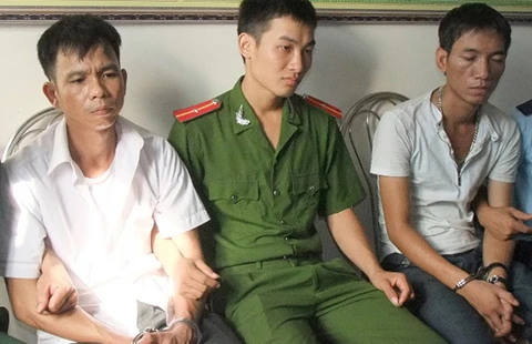 Nguyễn Công Cường (trái) và Phạm Kim Dũng (phải) bị bắt cùng tang vật. Ảnh: ĐL