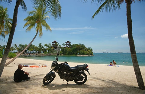 Tác giả tại bãi biển Palawan, Singapore.