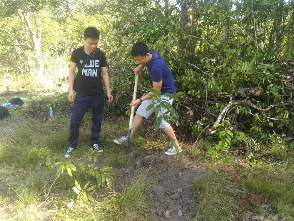 Nhóm bạn trẻ cho biết lần đầu tiên cầm xẻng đào đất.