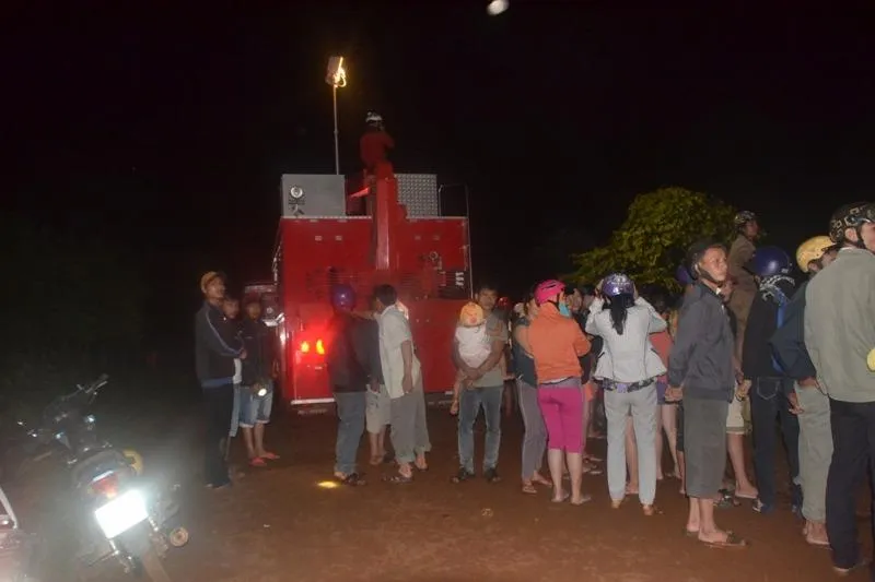 Nhận tin báo, lực lượng cứu hộ của Công an tỉnh Đắk Lắk điều động hai xe cứu hộ cùng nhiều cán bộ, chiến sĩ đến hiện trường tìm kiếm nạn nhân.