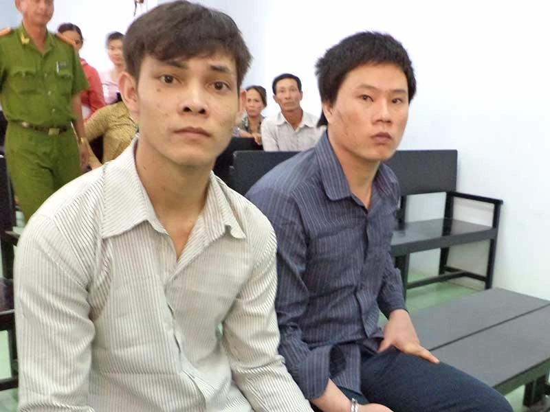 Trần Văn Uống (trái) và Khưu Khánh Sỹ tại phiên tòa sơ thẩm lần 1. Ảnh: PL