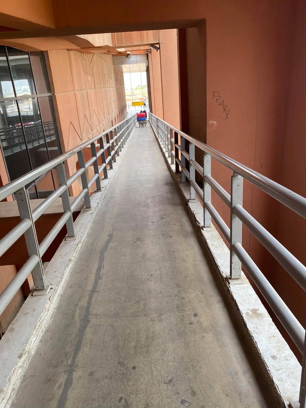 Người đẹp đẩy vali lên hai con dốc dài mới đến chỗ mua check vé bay tiếp, không có thang cuốn hỗ trợ. Ảnh: NVCC